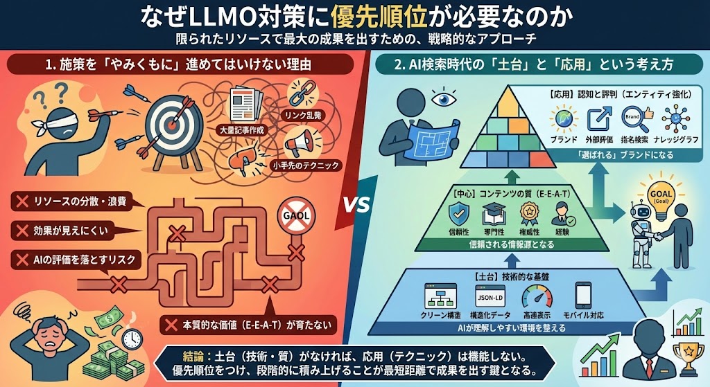 LLMO対策の優先順位とは?限られたリソースで最大効果を出す施策の順番