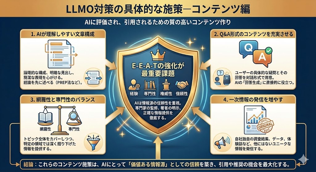 - LLMO対策の具体的な施策―コンテンツ編