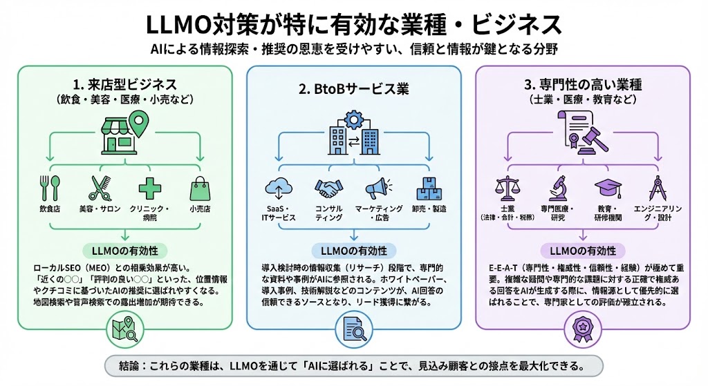 - LLMO対策が特に有効な業種・ビジネス