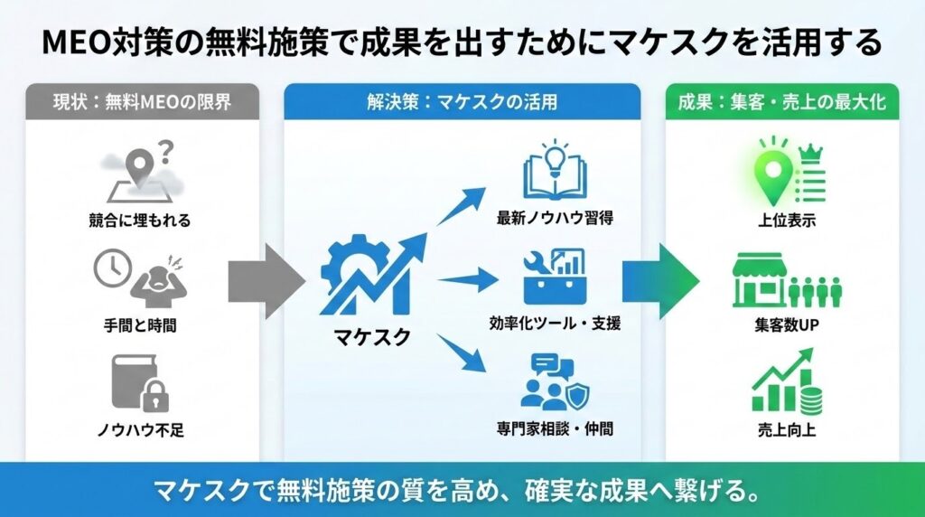 MEO対策の無料施策で成果を出すためにマケスクを活用する