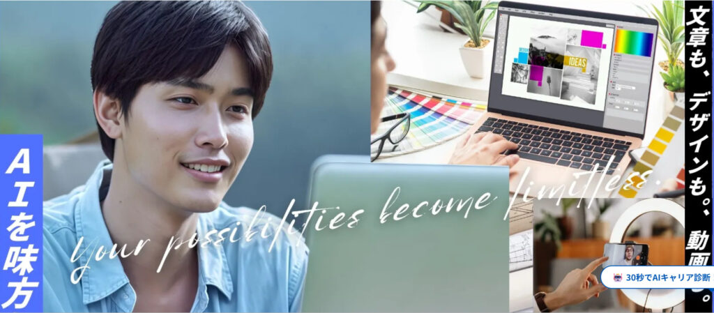本業を持ちながらAI副業で収入源を増やしたい社会人が、もっともフィットするターゲット層です。プログラミング不要でクリエイティブ領域のAI活用を学べるため、「文系出身だがAIを使いこなしたい」という方にも門戸が開かれています。